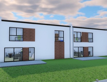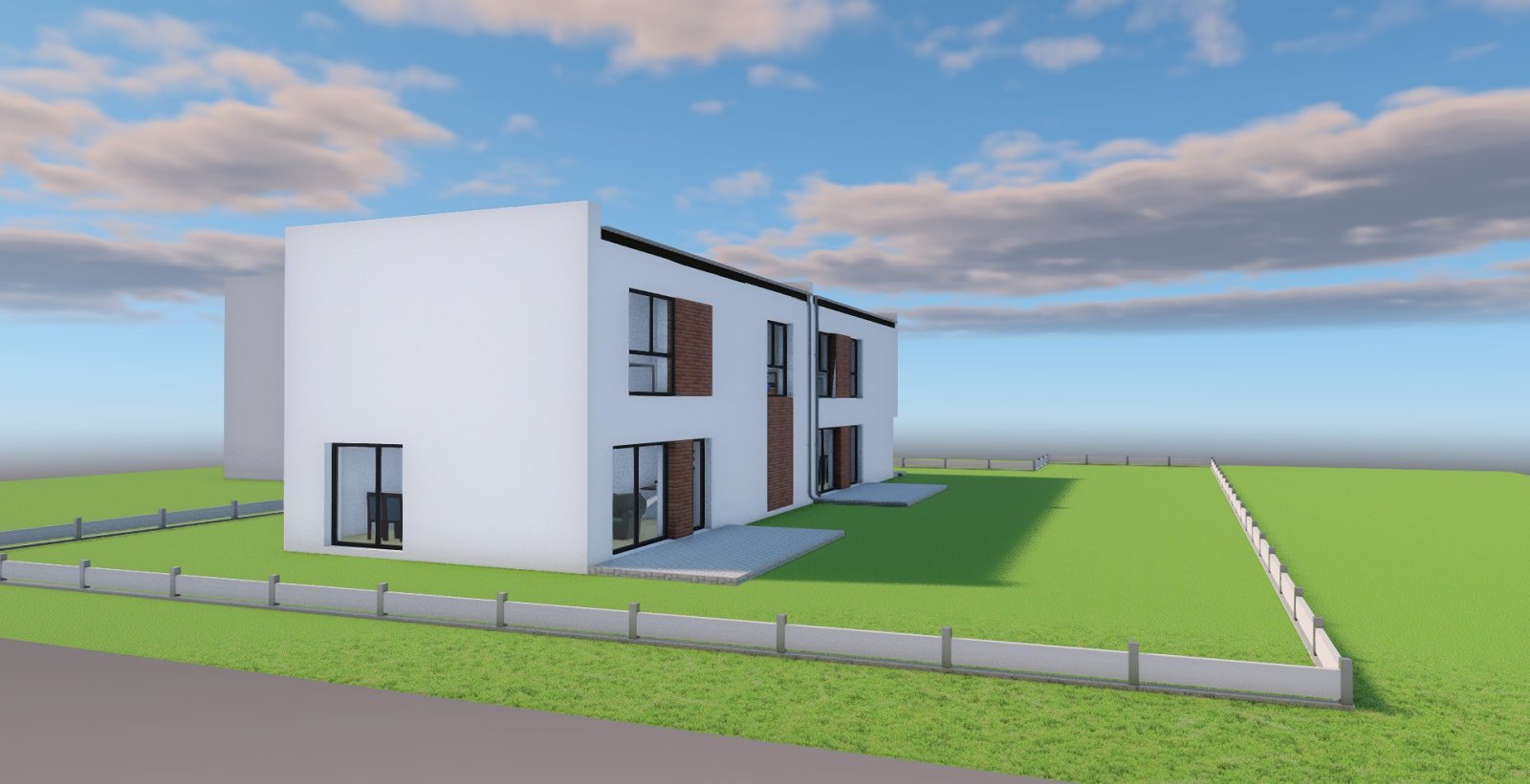 W ofercie mamy dwa domy o powierzchni ok 140 mkw. Każdy dom posiada garaż, cztery sypialnie, dwie łazienki i przestronny salon z wyjściem na duży ogród.