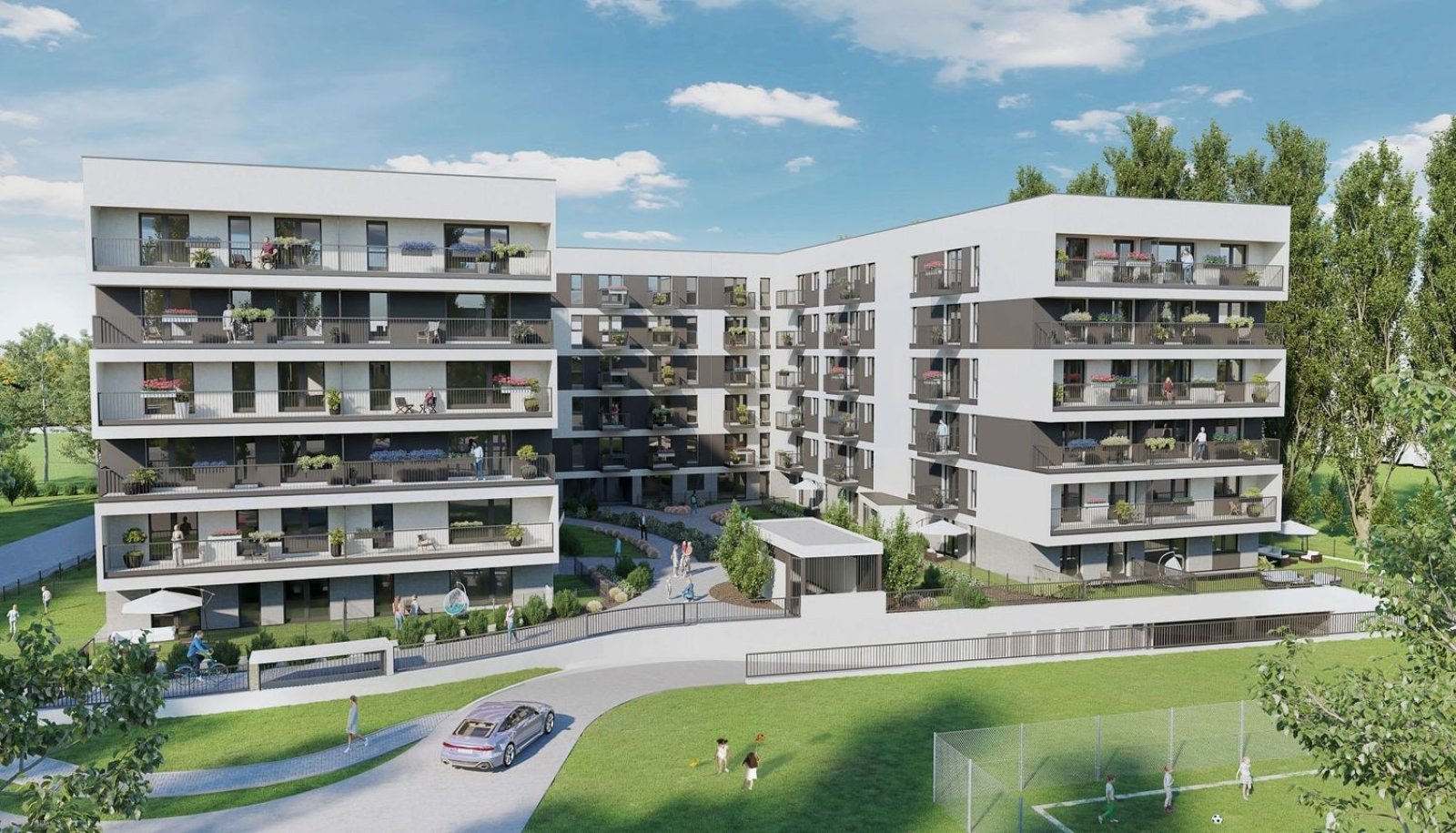 W ramach inwestycji powstał elegancki, pięciokondygnacyjny budynek oferujący szeroki wybór mieszkań o zróżnicowanych metrażach i układach. Przemyślane projekty lokali zapewniają komfort codziennego użytkowania, a duże przeszklenia gwarantują doskonałe doświetlenie wnętrz. Każde mieszkanie posiada balkon, natomiast lokale na parterze zostały wyposażone w prywatne ogródki, tworząc idealną przestrzeń do wypoczynku.