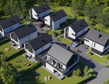 Dodatkowym atutem inwestycji jest pełne wykończenie zewnętrzne, w tym taras i podjazd z kostki betonowej, ogrodzenie działki oraz całego osiedla z automatycznym szlabanem, a także jednostanowiskowy garaż z bramą sterowaną elektrycznie. Osiedle zostanie również uzbrojone w nowoczesne instalacje: alarmową, TV, komputerową, domofonową i światłowodową.